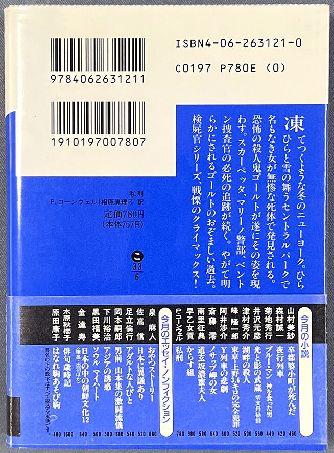 凍てつくような冬のニューヨーク。ひらひらと雪の舞うセントラルパークで名もなき女が無惨な死体で発見される。恐怖の殺人鬼ゴールトがついにその姿を現す。スカーペッタ、マリーノ警部、ベントン捜査官の必死の追跡が続く。やがて明らかにされるゴールトのおぞましい過去。検屍官シリーズ、戦慄のクライマックス!