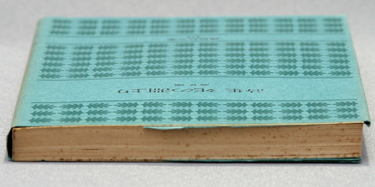 【本体】周縁部にやや強いヤケ・ホコリヨゴレがあり、天面にはやや強い点シミ、小口面には弱い使用感・ホコリシミもあります。原因は分かりませんが、巻末の24ページ分ほどだけにヤケがあまりなく、紙色が白く見えます。